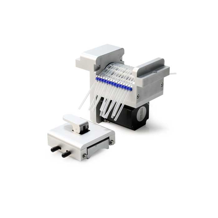 ■10滾輪和一體式上壓結(jié)構(gòu)設計,使得流體傳輸脈動更小,精度更高,通道間一致性更好,特別適用于流動注射分析儀配套使用;
